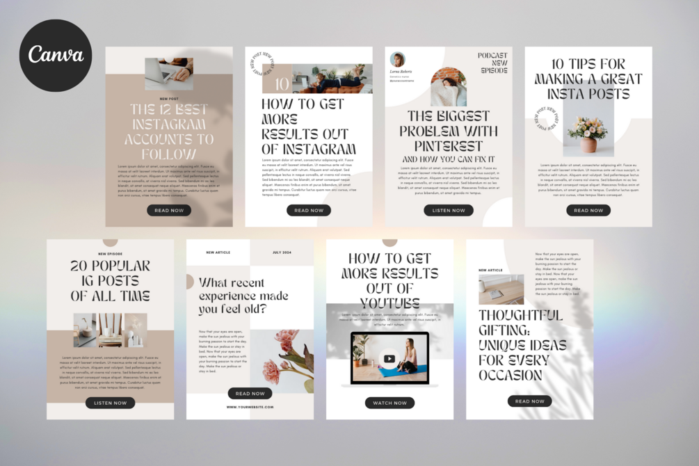 Any photos pictured aren't included and are for display purposes only, but Canva includes 1000s of beautiful images for you to choose from.