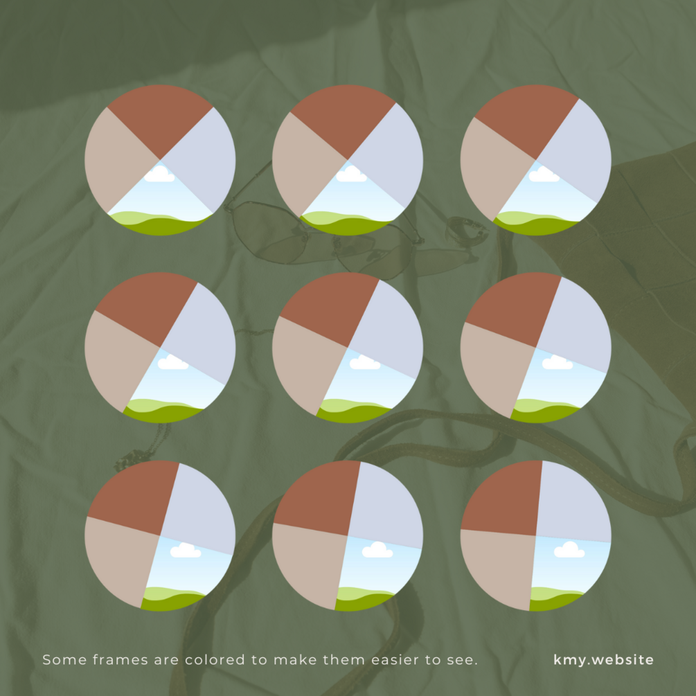 Set of 72 Circular Sector photo frames and 18 combinations for Canva that do not rotate the photos inside. The frames were rotated by 5 degrees.