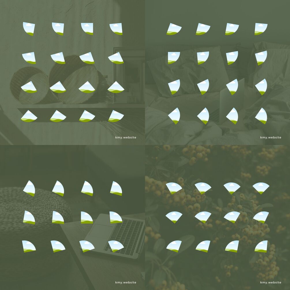 Set of 72 Circular Sector photo frames and 18 combinations for Canva that do not rotate the photos inside. The frames were rotated by 5 degrees.