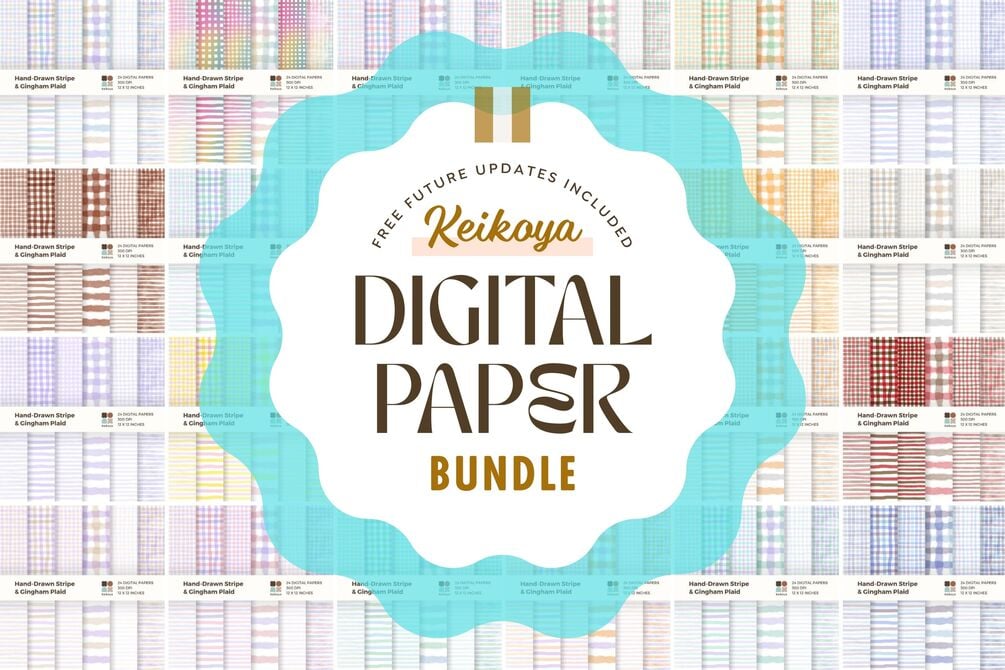 Digital Paper Bundle is a cost-effective package that includes hand-drawn gingham check and stripe background materials. It offers more than 90% in savings compared to purchasing them individually. Purchase today and you will get all the future updates for free!