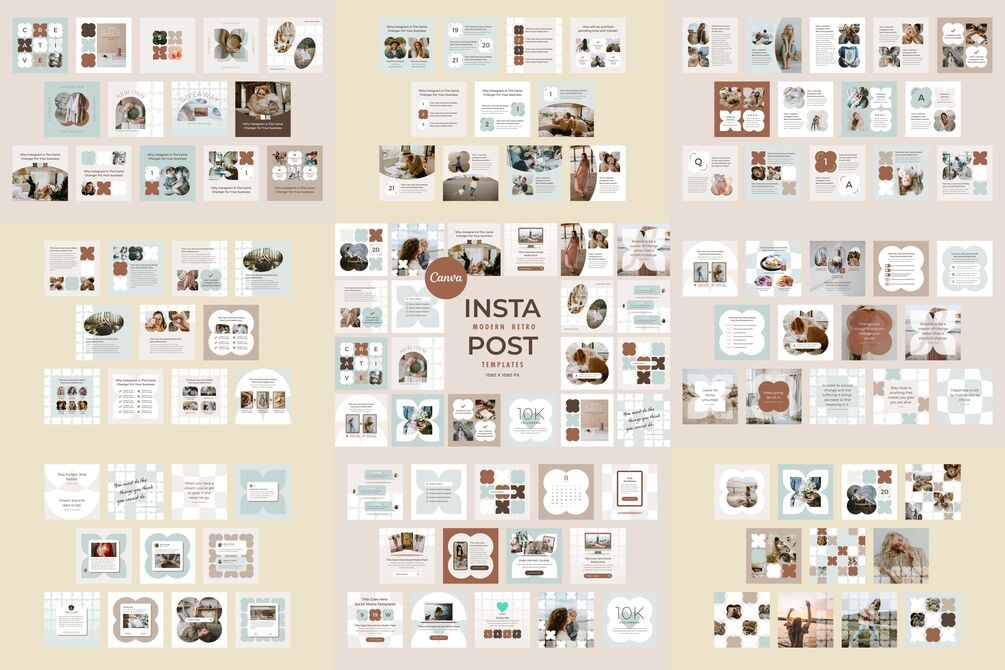 - 100 unique Instagram template designs in 3 sizes: posts and stories (300 templates in total)