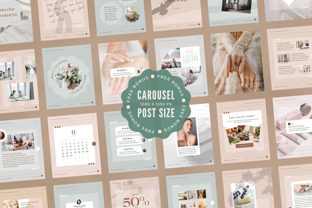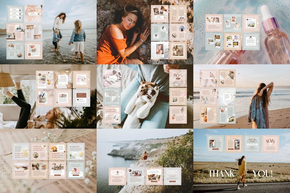 - 100 unique Instagram template designs in 3 sizes: posts and stories (300 templates in total)