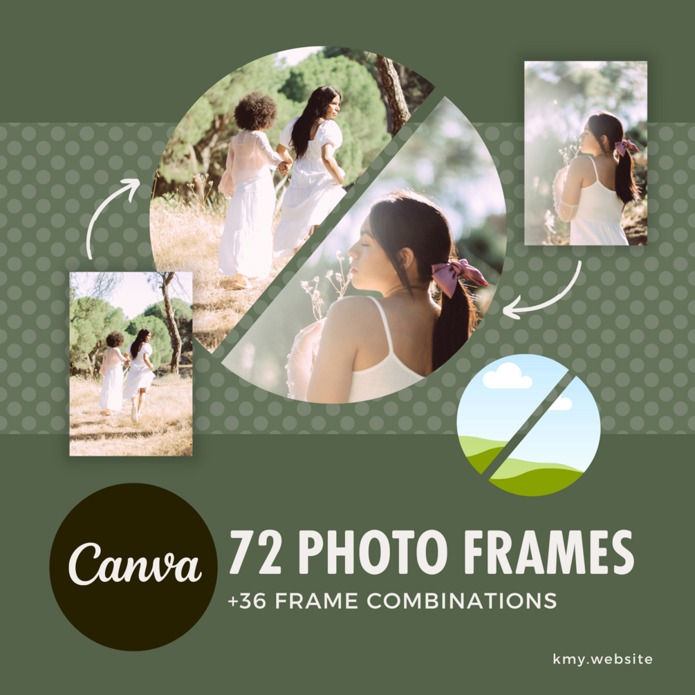 72 Semicircle Photo Frames + 36 Combinations for Canva