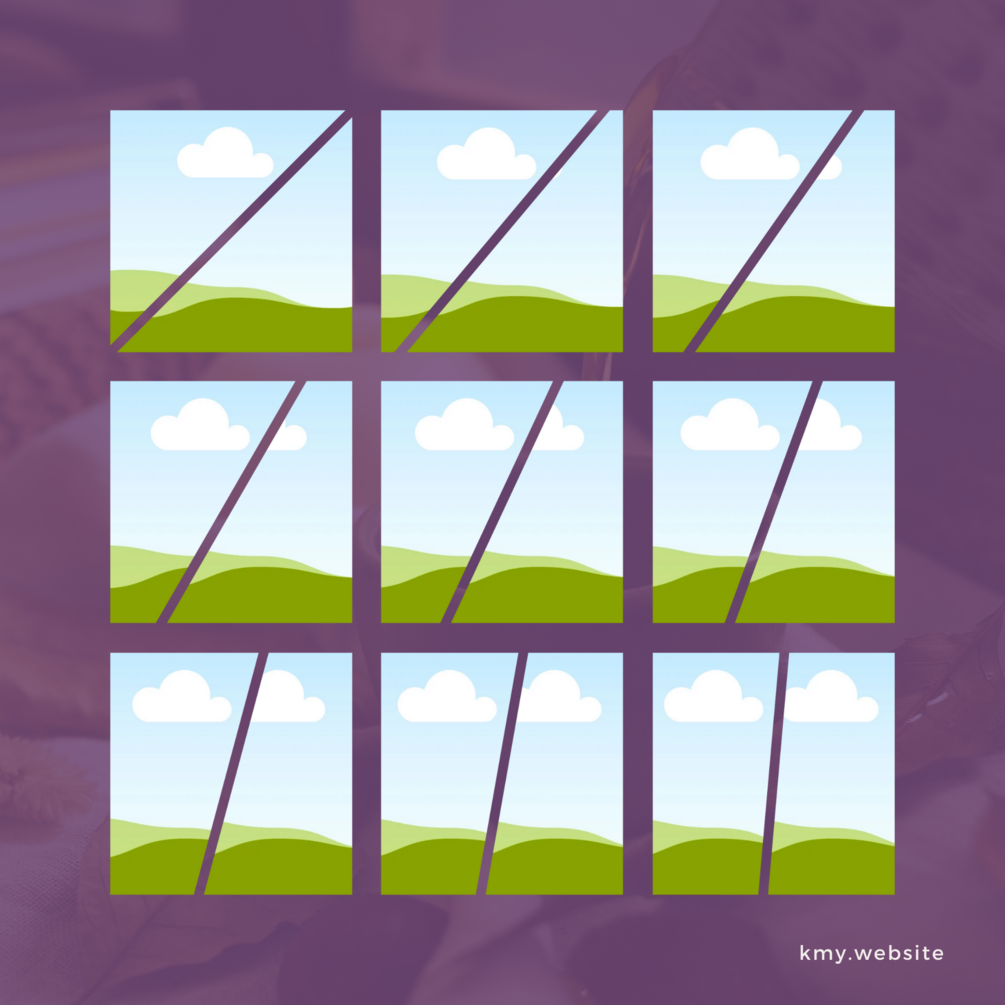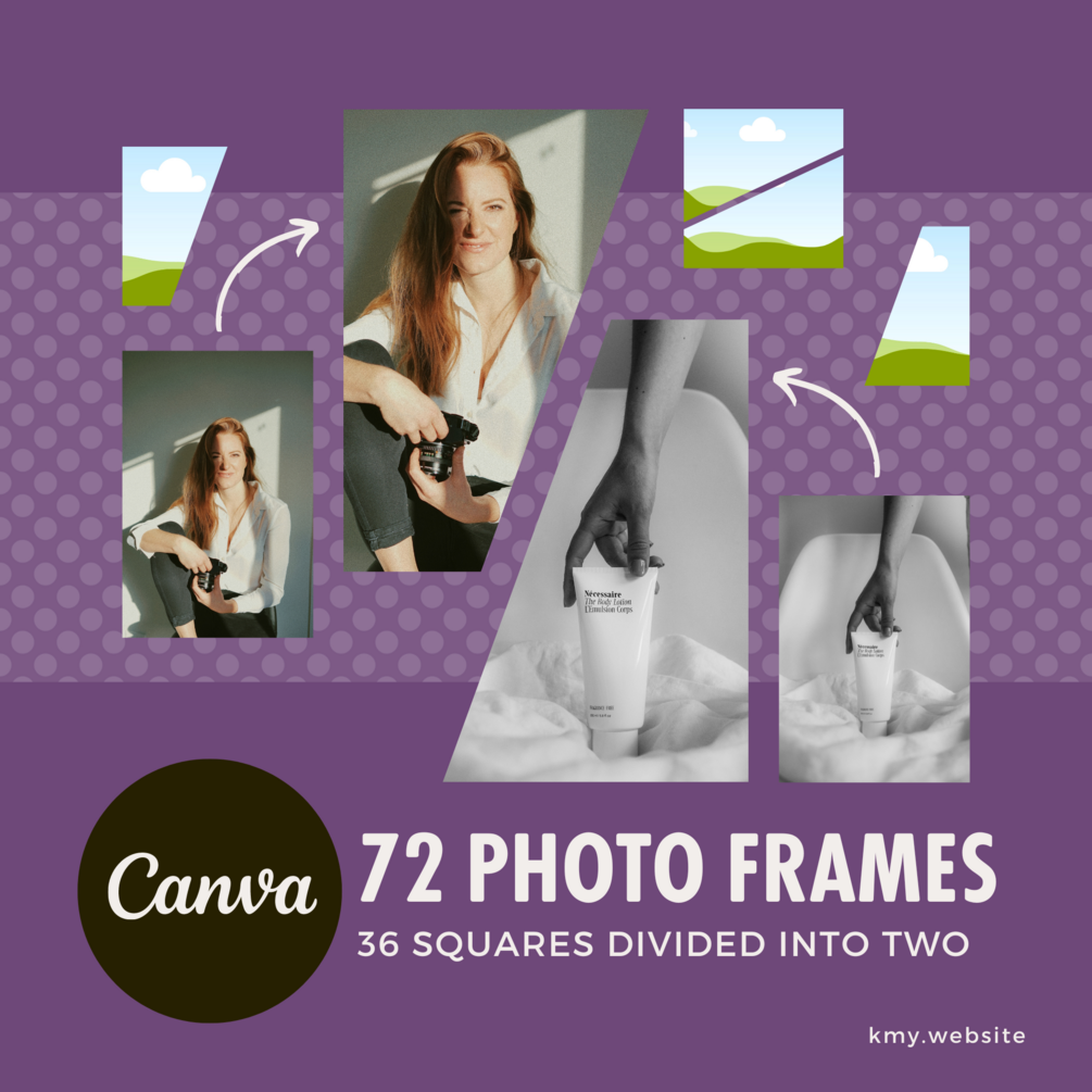 Set of 72 photo frames of 36 Squares Divided Into 2 for Canva that do not rotate the photos inside.